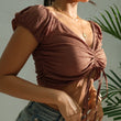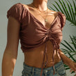 Drawstring Ruched Short Sleeve Cropped Blouse