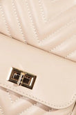 This stylish quilted crossbody bag features a sophisticated diamond-stitched pattern in a versatile nude beige tone. Crafted with premium synthetic leather material, it showcases elegant gold-tone hardware including zippers and turn-lock closure. The adjustable strap allows for comfortable crossbody wear or fashion chest bag styling. Perfect compact size for carrying daily essentials while maintaining a chic, structured silhouette. The quilted texture adds luxurious appeal while the neutral color complements any outfit. Ideal for fashion-forward individuals seeking both style and functionality in a versatile accessory.