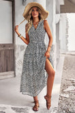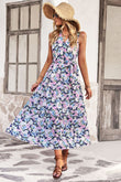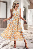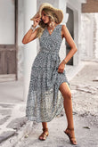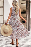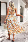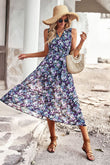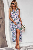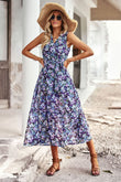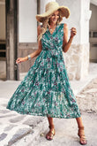 Floral Belted Surplice Sleeveless Tiered Dress