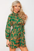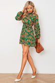 Floral Frill Neck Tied Balloon Sleeve Dress