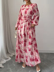 Floral Long Sleeve Maxi Dress with Drawstring Detail