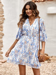 Floral Notched Neck Flounce Sleeve Dress