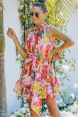 Floral Polka Dot Belted Sleeveless Mini Dress