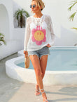 Flower Graphic Lace-Up Openwork Hooded Cover Up