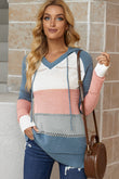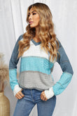 Full Size Color Block Knitted Hoodie
