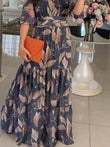 Full Size Printed V-Neck Maxi Dress with Tiered Hemline Plus Size