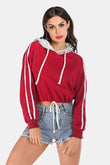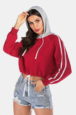 Full Size Side Stripe Drawstring Hem Cropped Hoodie