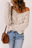 Heathered Chunky Knit Twisted Open Back Sweater