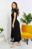 This cute dress features an elasticized waist that will flatter your figure, and a mid-calf length for a comfy and casual feel. The contrasting damask adds a tasteful detail that makes complete your outfit as easy as throwing on the dress and slipping on a pair of sandals.