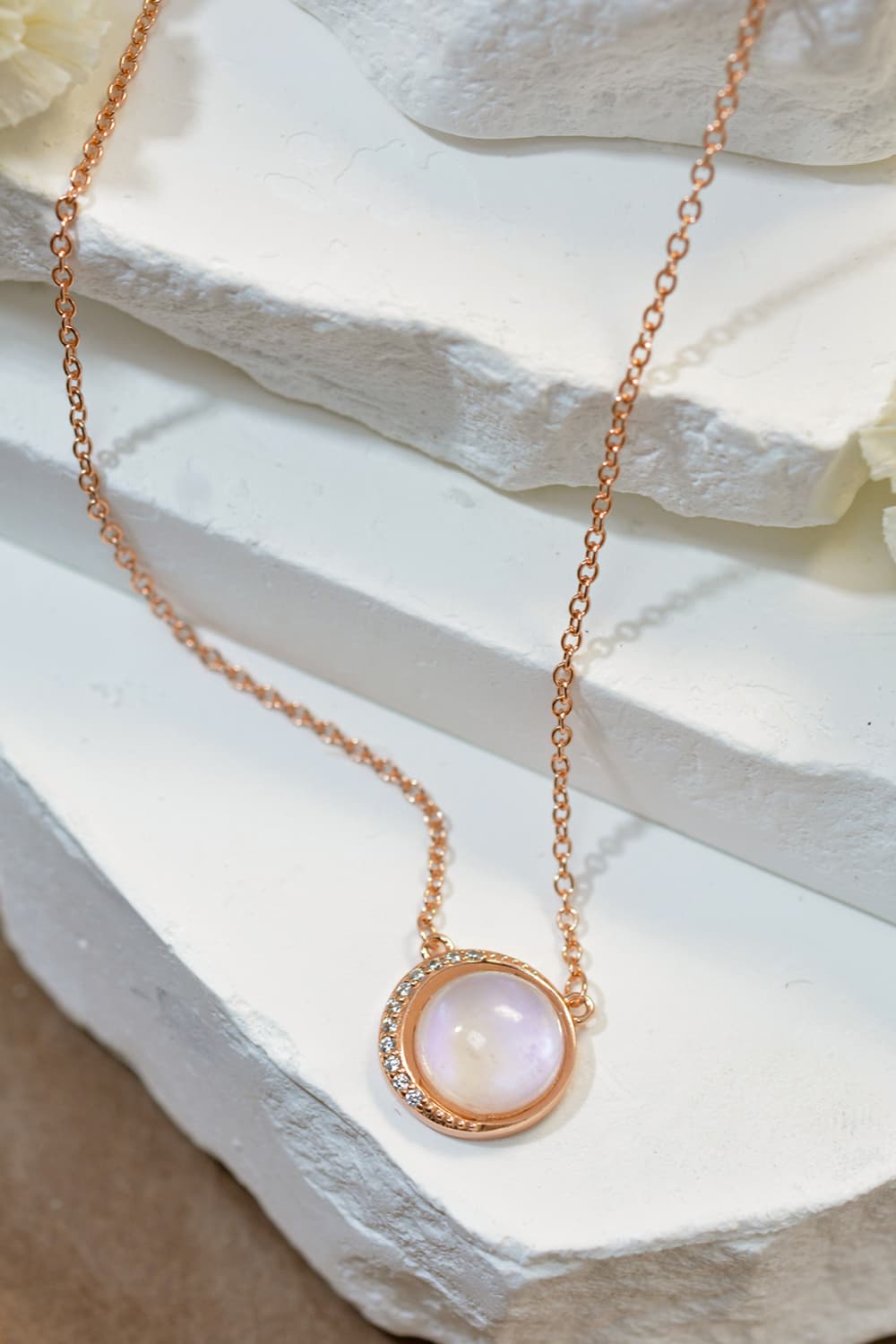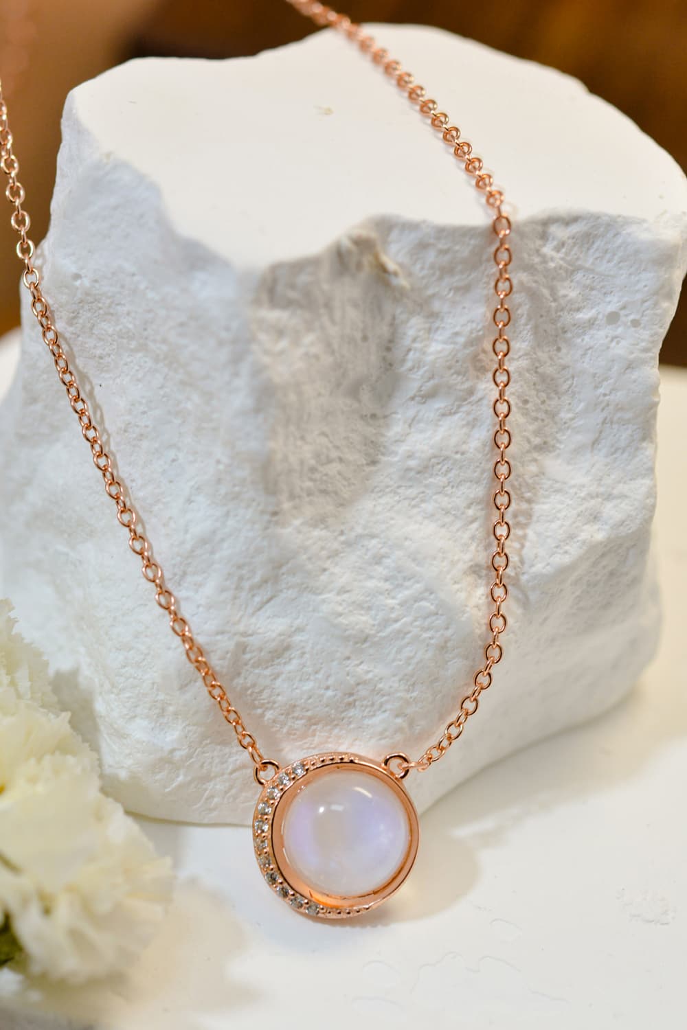 High Quality Natural Moonstone 18K Rose Gold-Plated 925 Sterling Silver Necklace