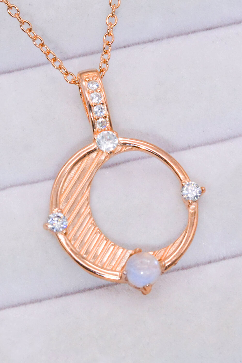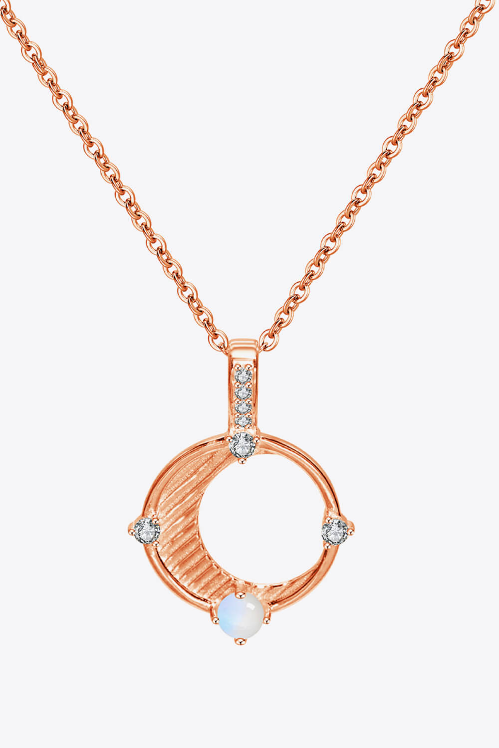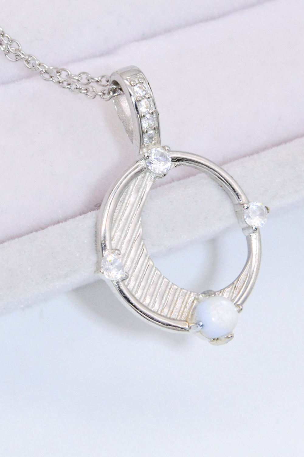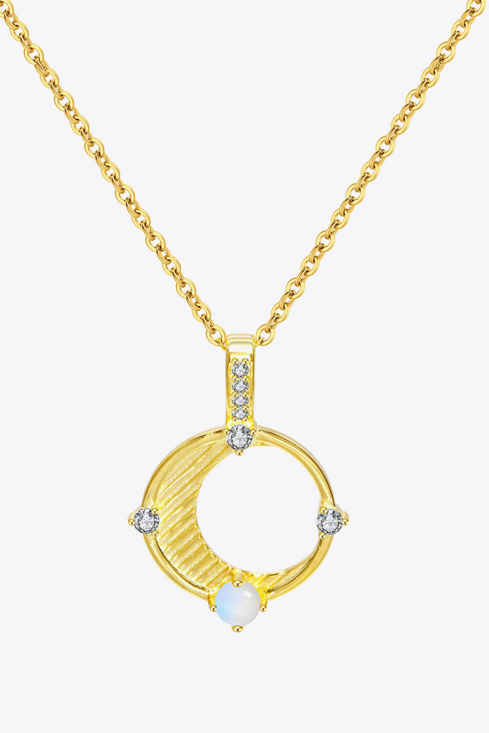 Inlaid Zircon and Natural Moonstone Pendant Necklace
