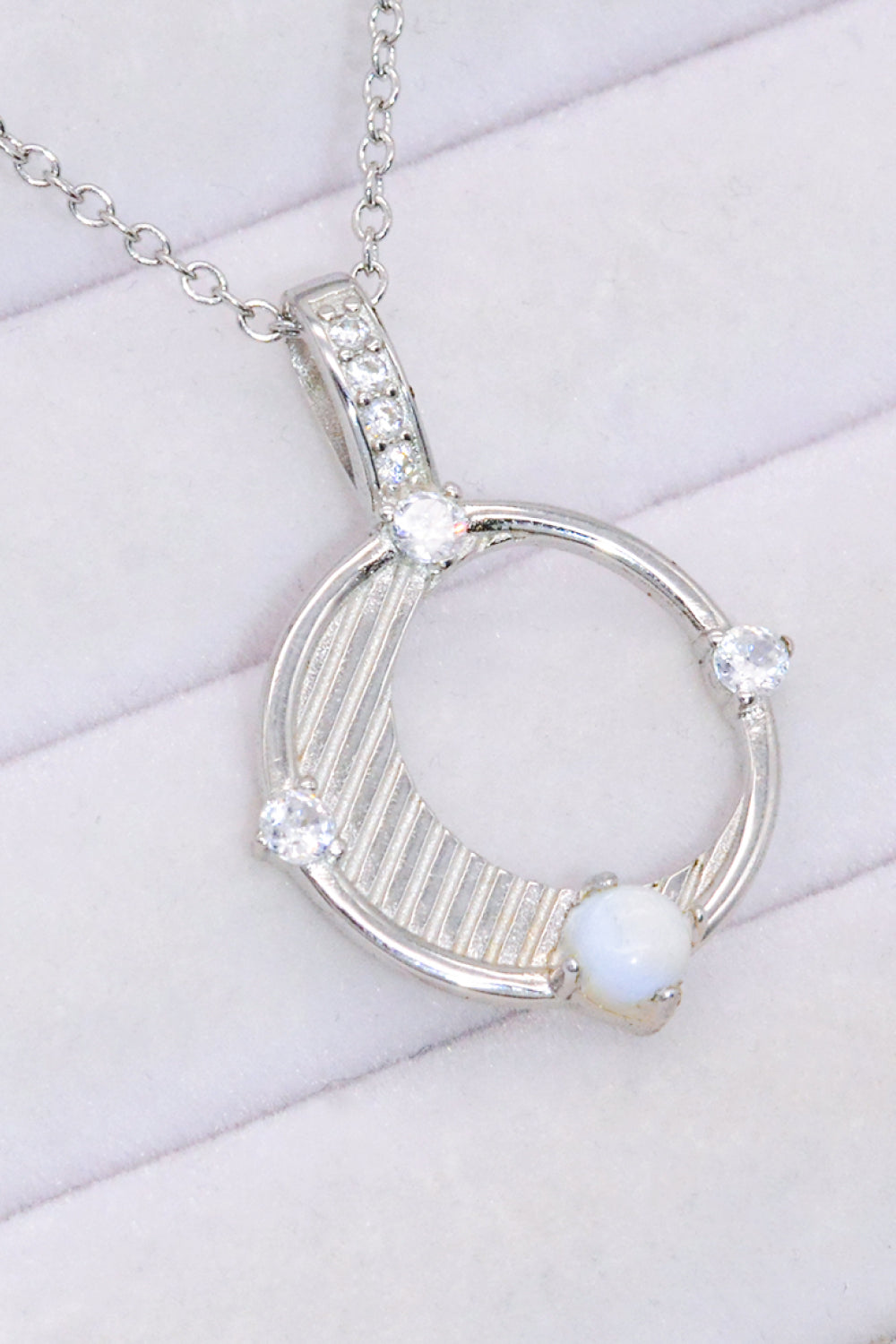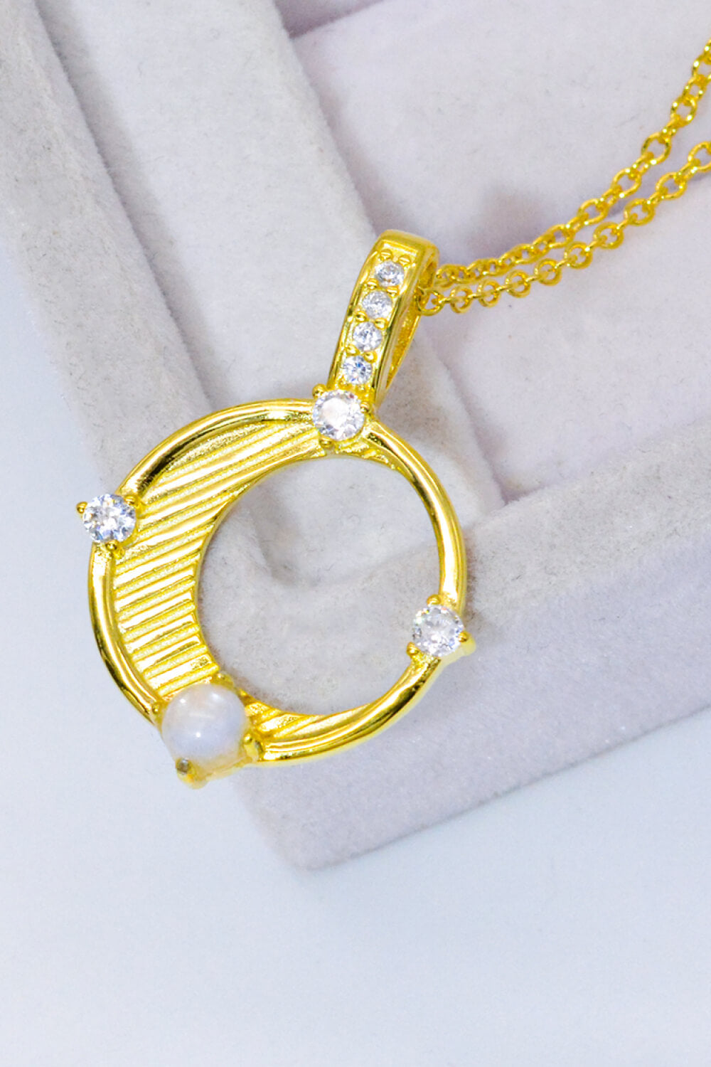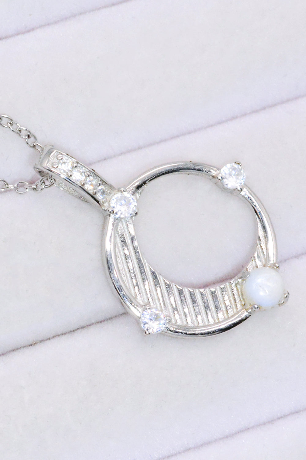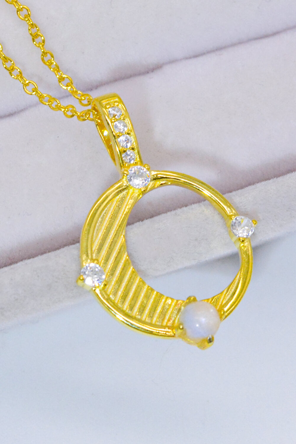 Inlaid Zircon and Natural Moonstone Pendant Necklace