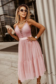 Lace Adjustable Spaghetti Strap Tiered Dress