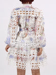 Lace Eyelet Mini Dress with Balloon Sleeves