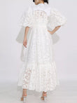 Lace Puff Sleeve Tie Waist Maxi Dress