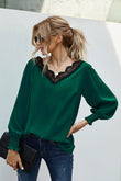 Lace Trim Lantern Sleeve Blouse