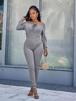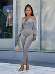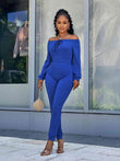 Lace-Up Off-Shoulder Long Sleeve Jumpsuit