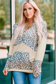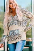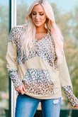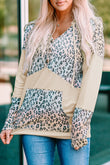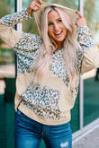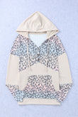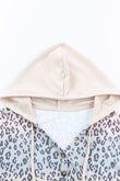 Leopard Color Block Buttoned Drawstring Detail Hoodie