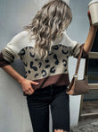 Leopard Color Block Ribbed Trim Tunic Sweater
