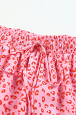 Leopard Drawstring Waist Frill Trim Tiered Skirt