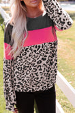 Leopard Print Color Block Long-Sleeve Top