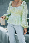 Leopard Square Neck Puff Sleeve Peplum Blouse