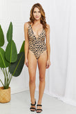 Marina West Swim Beachy Keen Full Size V-Neck Front Tie One-Piece Swimsuit in Leopard