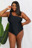 Marina West Swim Deep End One-Shoulder One-Piece Swimsuit in Black