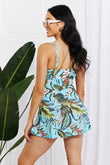 Jump into summer with this v-neck swim dress. A cute print sets the scene for a paradise-perfect piece. Also featuring thick straps, a straight-cut back, and a tie under the bust, this is the swim dress of your dreams.