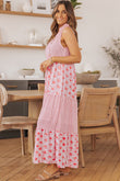 Mixed Print Tie-Neck Sleeveless Maxi Dress