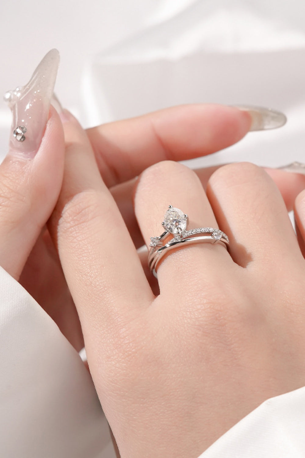 - Material: 925 sterling silver, Platinum-plated, Moissanite, Zircon (accent stones)