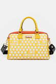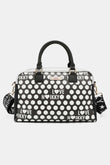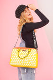 The Contrast Polka Dot Handbag is a fun and playful accessory to add to your wardrobe. The contrasting colors make a bold statement and add visual interest. The polka dot pattern is timeless and adds a touch of whimsy to the bag. It is versatile and can easily complement a variety of outfits. The handbag is spacious enough to carry your essentials while still looking stylish. Elevate your look with the chic Contrast Polka Dot Handbag!