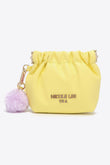 Crafted from premium faux vegan leather, this Pouch offers a cruelty-free alternative without compromising on style or quality. This pouch features a convenient metal spring closure, ensuring your belongings are secure and easily accessible. Its gold-tone hardware adds a touch of sophistication and elegance, elevating yourgenerallook. With dimensions of L 5.5" x H 4.25" x W 1.75" (D), this compact Pouch is designed to accommodate your everyday essentials while maintaining a sleek and streamlined silhouette. Whether you need a compact wallet for your cards and cash or a chic holder for your cosmetics and small accessories, this pouch has got you covered. As a delightful bonus, the pouch comes with a detachable pompom keychain. The vibrant and fluffy pompom adds a playful touch to your Pouch while also serving as a practical keychain, making it easier to find your keys in a crowded bag or purse.