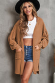 L: bust 46 in, sleeve length 18 in, length 34 in, hem width 48 in