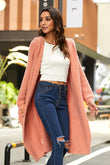 Open Front Long Sleeve Slit Hooded Cardigan
