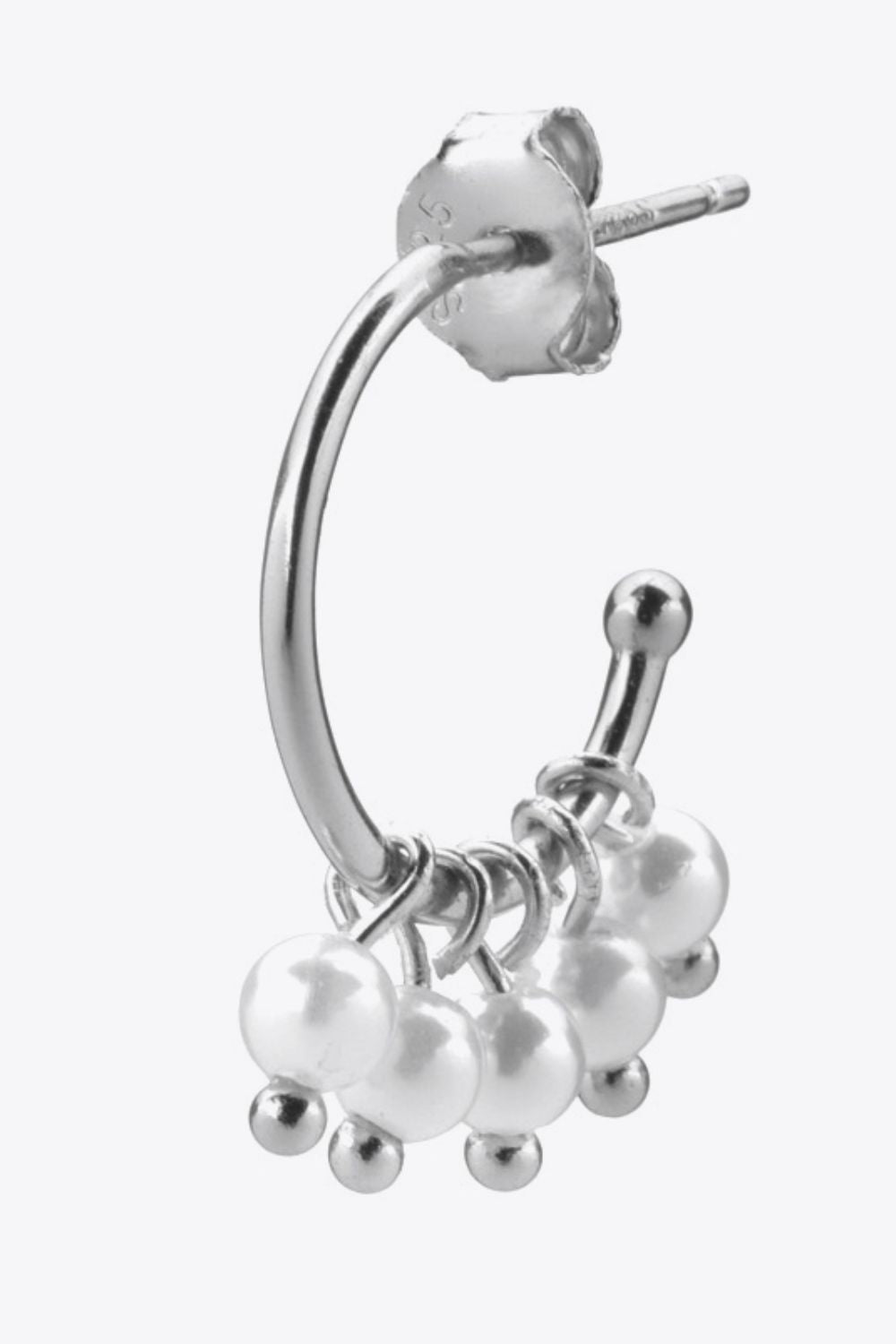 Pearl 925 Sterling Silver C-Hoop Earrings