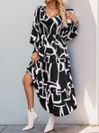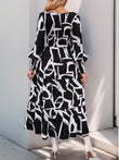 Perfee Smocked Printed Long Sleeve Midi Dress