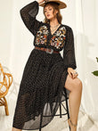 Plus Size Embroidered Tassel Balloon Sleeve Dress