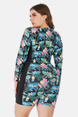 Plus Size Floral Zip Up Long Sleeve Short Wetsuit