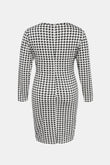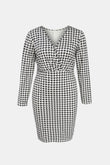 Plus Size Houndstooth Surplice Neck Long Sleeve Pencil Dress