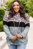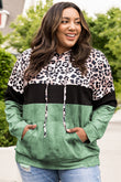 Plus Size Leopard Print Color Block Hoodie with Kangaroo Pocket