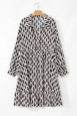 Plus Size Printed Johnny Collar Long Sleeve Dress