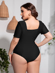 Plus Size Scoop Neck Short Sleeve One-Piece Swimsuit