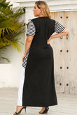 Plus Size Striped Color Block Round Neck Dress