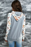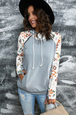 Printed Drawstring Detail Raglan Sleeve Hoodie