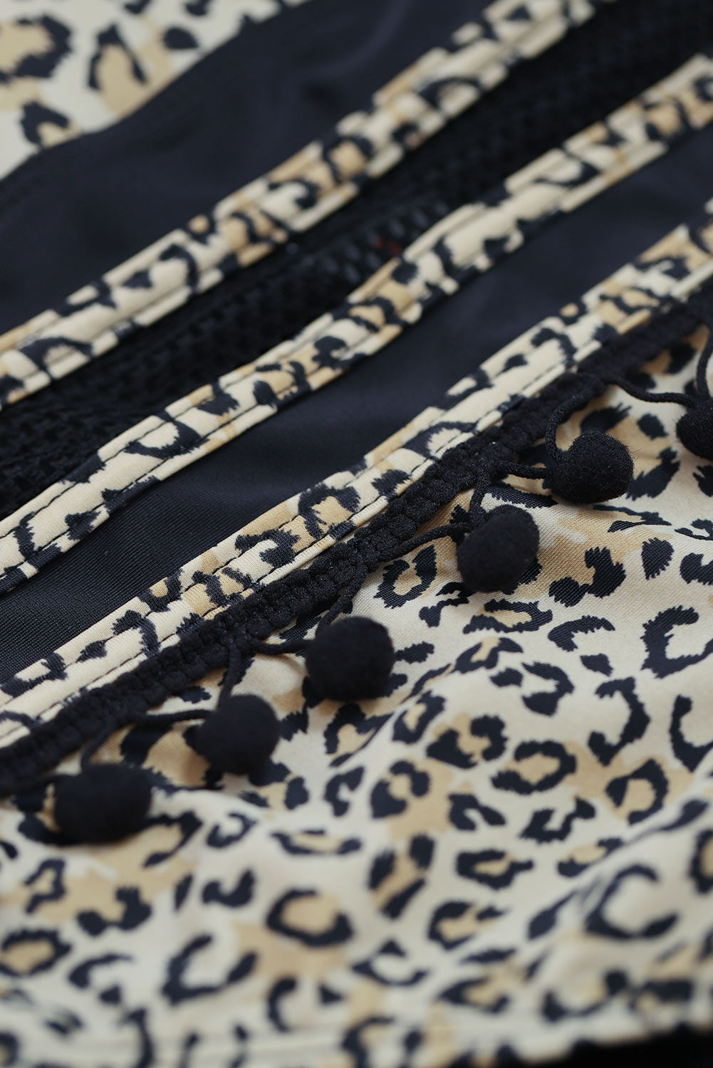 - Features: Pompom detail, tie back, high waist, removable padding, linning on both top and bottoms, no underwire