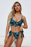 - Features: Two-piece set, tie back, tie side, open back, ruffle trim, no padding or underwire, lined