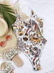 Printed Tie Back Scoop Neck One-Piece Swimsuit