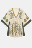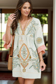 Printed V-Neck Three-Quarter Sleeve Mini Dress