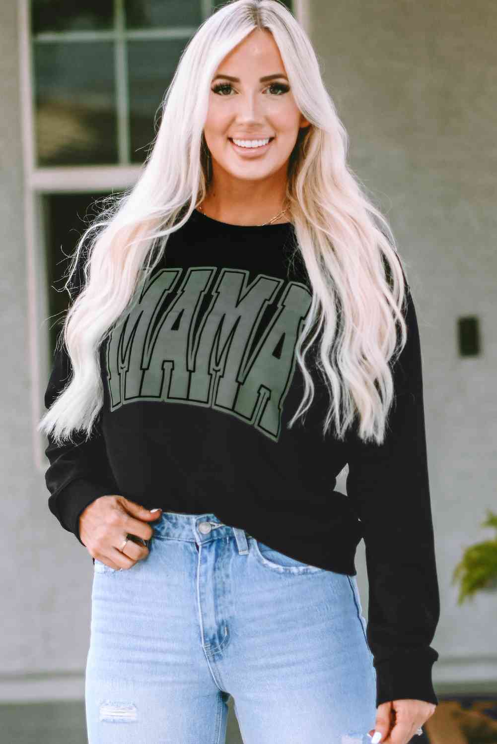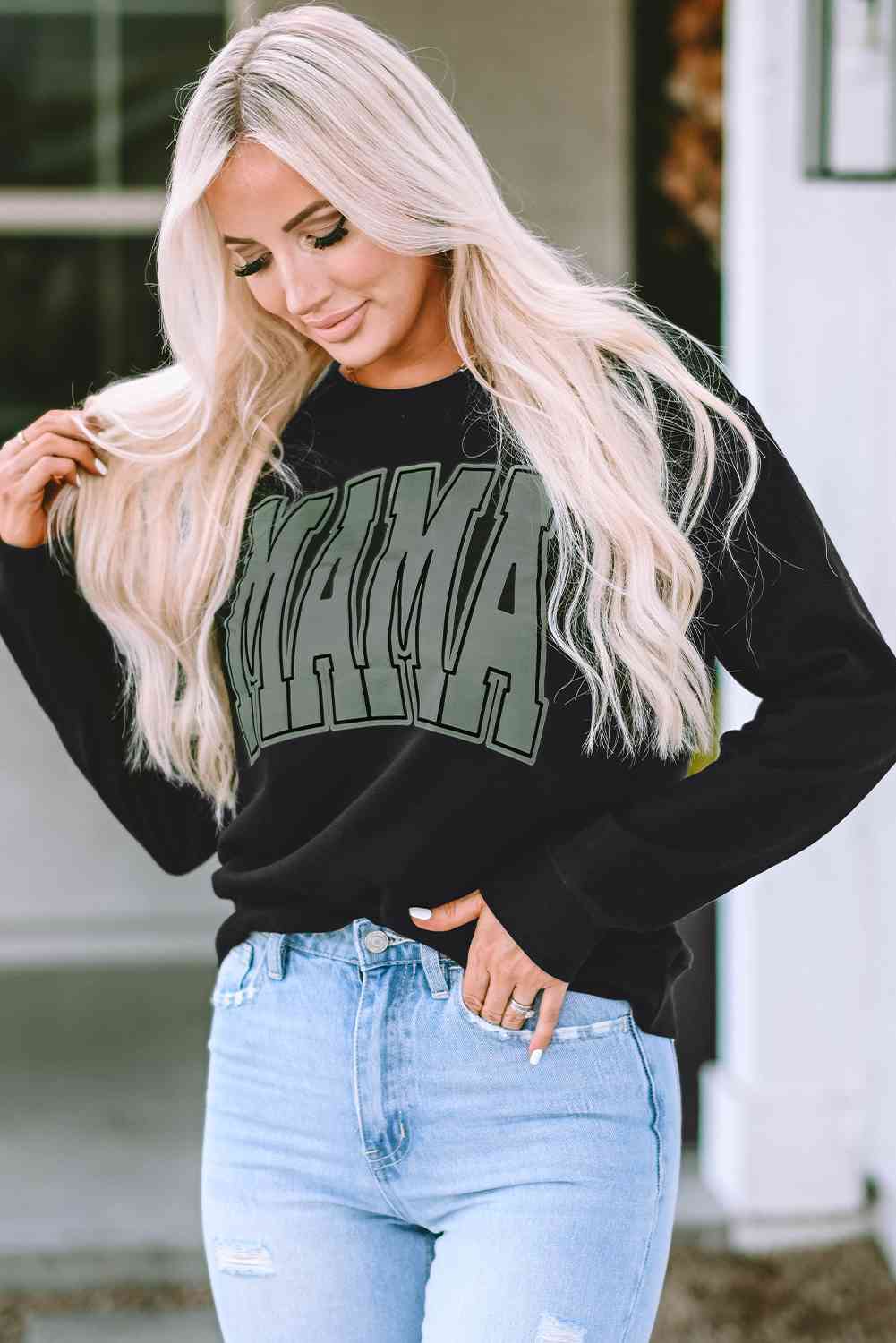Round Neck Long Sleeve MAMA Graphic Sweatshirt